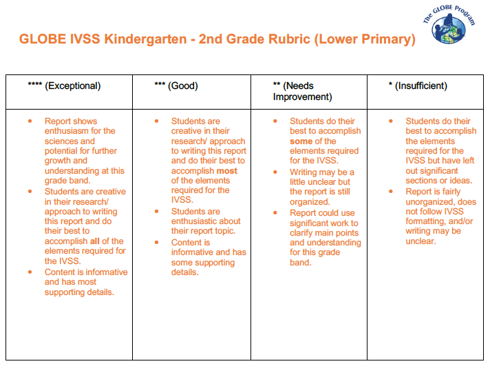 Project elements and criteria (Grades 3-5 Upper Primary, ages 8-11) (*required element)