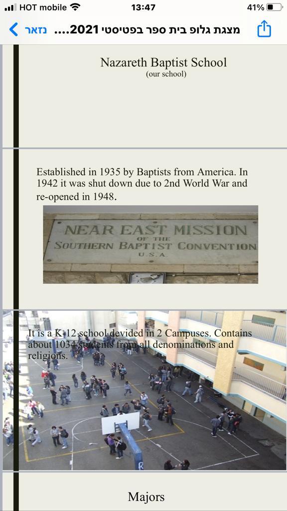 our school establish in 1935 we are in the Galilee region at Nazareth town we have 1040 students we have 12 classes in two campuses