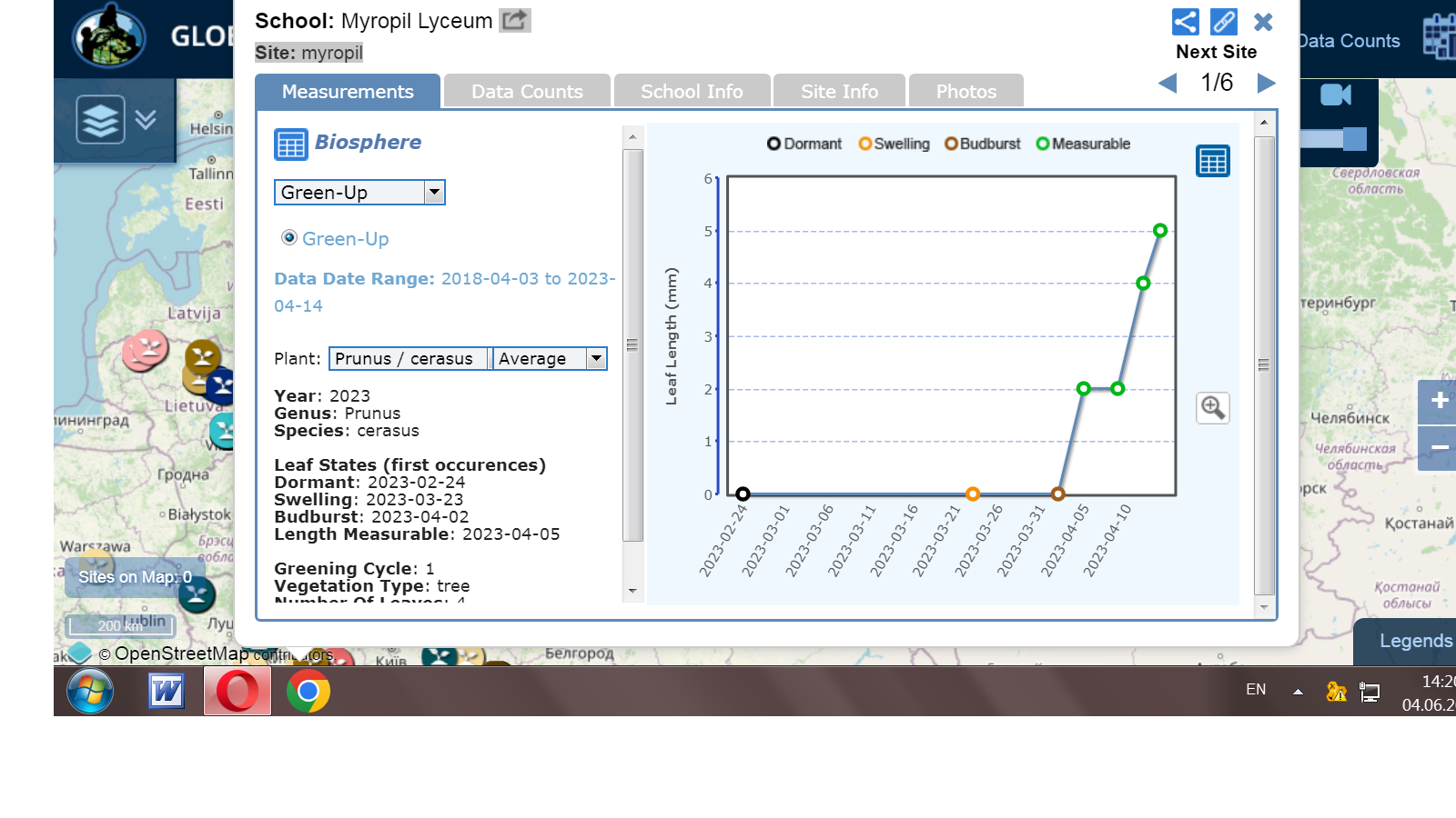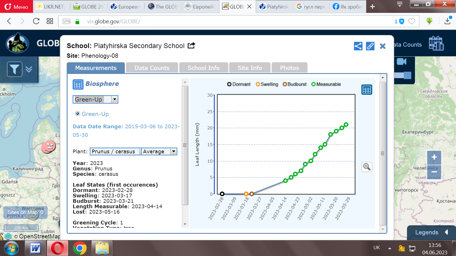 Development schedule of our cherries. And a comparison of our schedule with the schedule of the Myropol Lyceum, which also studied cherry