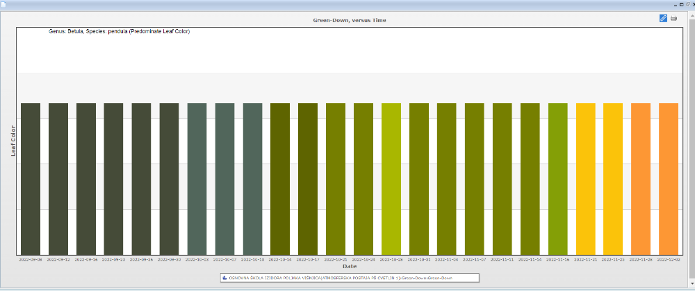 Greetings to everyone. I am Martina Simić Meznarić. I am a GLOBE teacher at Elementary School Izidora Poljaka Višnjica. This academic year, my students studied the yellowing of the oak tree in the home school and the yellowing of the birch (2 trees) in the district school.