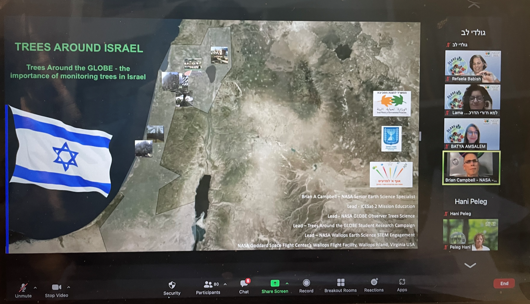 Brian A. Campbell, NASA Senior Earth Science Education and Communication: Trees around the Globe- the importance of monitoring trees in Israel.
