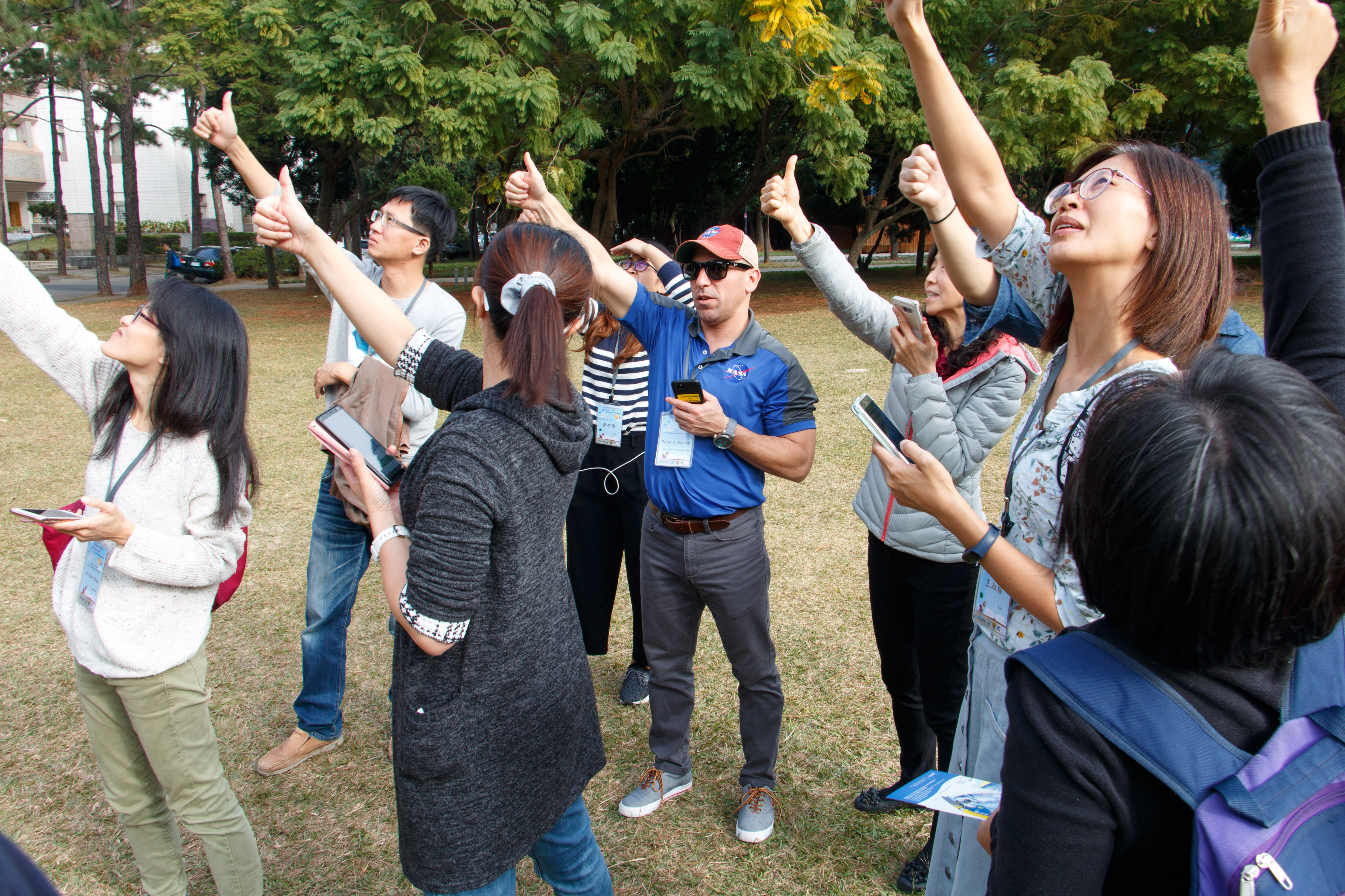On December 17, two trainers shared their knowledge about the application of NASA Satellite data and GLOBE observation data on science teaching. In the morning, Dorian introduced how NASA monitors the worldwide precipitation by GPM and Peter shared how the SMAP satellite measures the soil moisture. They strengthened the importance of observing the precipitation and moisture which help us to realize the hydrosphere and the atmosphere. In the afternoon, they taught Taiwan teachers how to do atmosphere and mosquito observations through GLOBE Observer App.